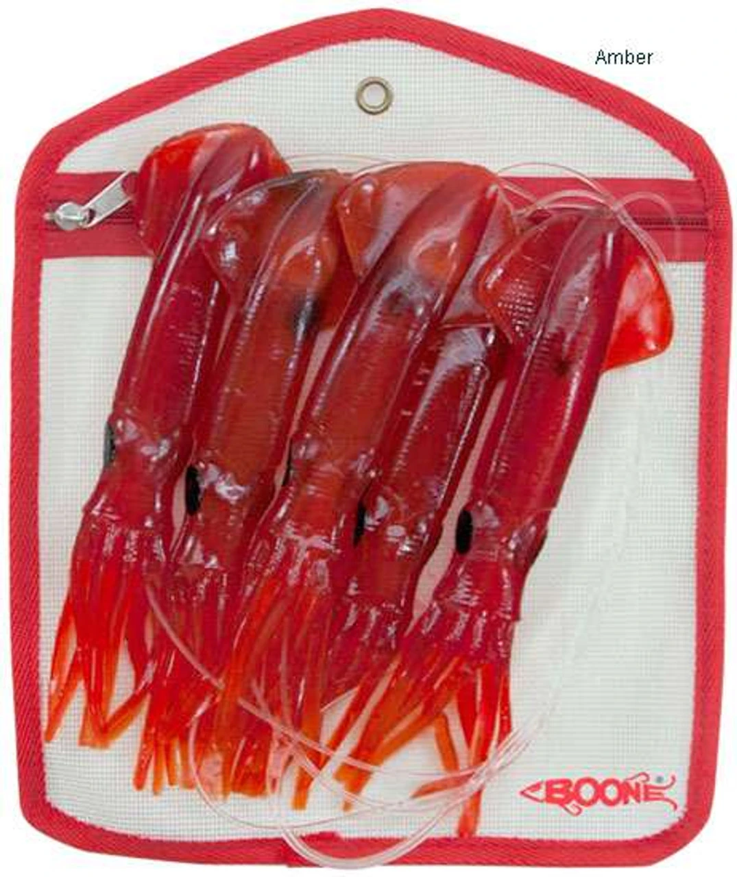 The Boone Sea Squid Daisy Chain has 5 life-like Squid that fish can’t resist. The Squid can be fished as a teaser or rigged with a hook for killer striking action. The Squid Daisy Chain is rigged on mono with a quality snap swivel.