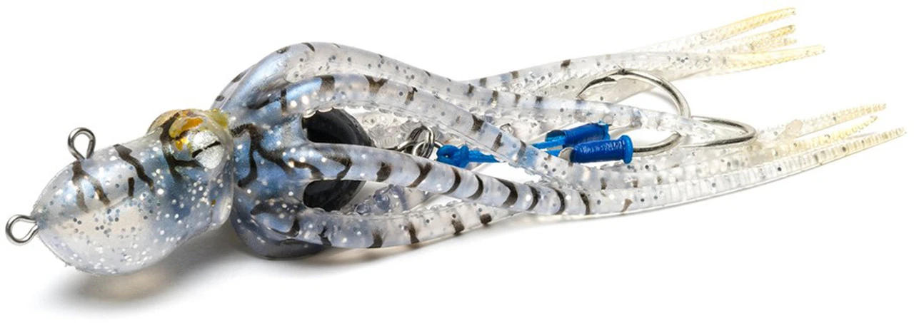 One of the most lifelike lures you’ll ever see, Mustad InkVader Octopus Jig looks, moves, and even squirts black ink just like the real thing. Constructed from a highly supple yet super tough TPE material, the InkVader’s eight tentacles respond to every movement of the rod tip with intense realism. The InkVader is most effectively deployed with a vertical jigging technique around reefs and other bottom structure where octopus may hide, but is also effective when slow trolled or even dead-sticked, as the slightest current or movement of the boat is enough to bring the free flowing tentacles to life. The heads are equipped with two different line-tie points to cater towards different approaches. Each InkVader Jig comes with 10 ink tablets that can be added to the head cavity, and will allow the lure to disperse a non-toxic and soluble black ink infused with actual octopus scent. This feature brilliantly mimics the behavior of an octopus fleeing from predators, and only heightens the InkVader’s unprecedented realism. There are many different iterations of the InkVader to choose from, including three different sizes, ten different weight options, and nine photorealistic color patterns modeled after actual species of octopus.
