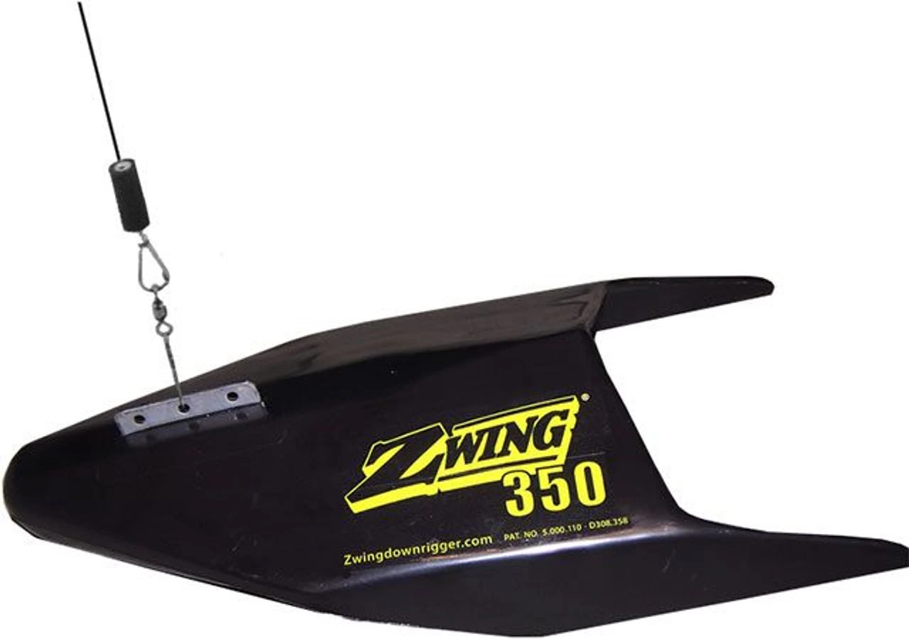 The Zwing downrigger offers a great alternative to the traditional lead ball. Operating on the principle of hydrodynamic depression, rather than weight, the Zwing offers boat captains and anglers the ability to troll lures and baits over a range of speeds without complicated adjustments to the tow cord lengths. The design puts you in control of depth and lateral location. Unlike any other weighted planer the Zwing’s unique design creates an underwater vibration similar to that of injured or schooling baitfish. The Zwing is made from, lightweight, virtually indestructible, polypropylene plastic and can be customized to track in any direction away from your boat.